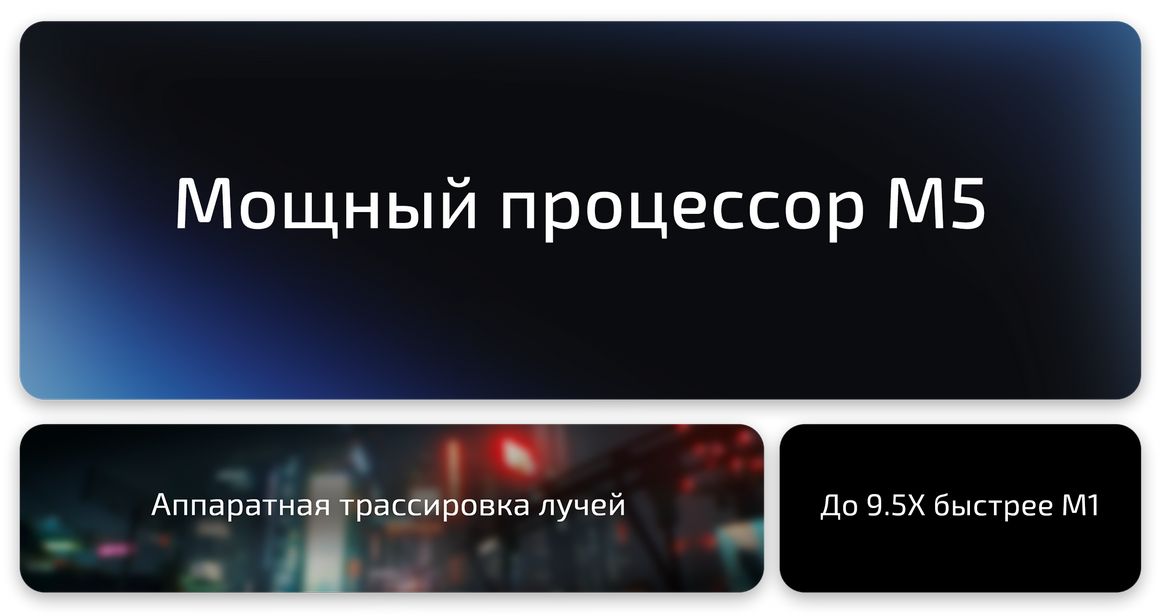 Ключевое преимущество M5 — встроенный нейронный ускоритель в каждом графическом ядре. Благодаря этому производительность в задачах искусственного интеллекта выросла в 4 раза по сравнению с поколением M4 и в 9,5 раза относительно M1 . Пропускная способность унифицированной памяти достигла 153 ГБ/с — на 28% выше, чем у предшественника .